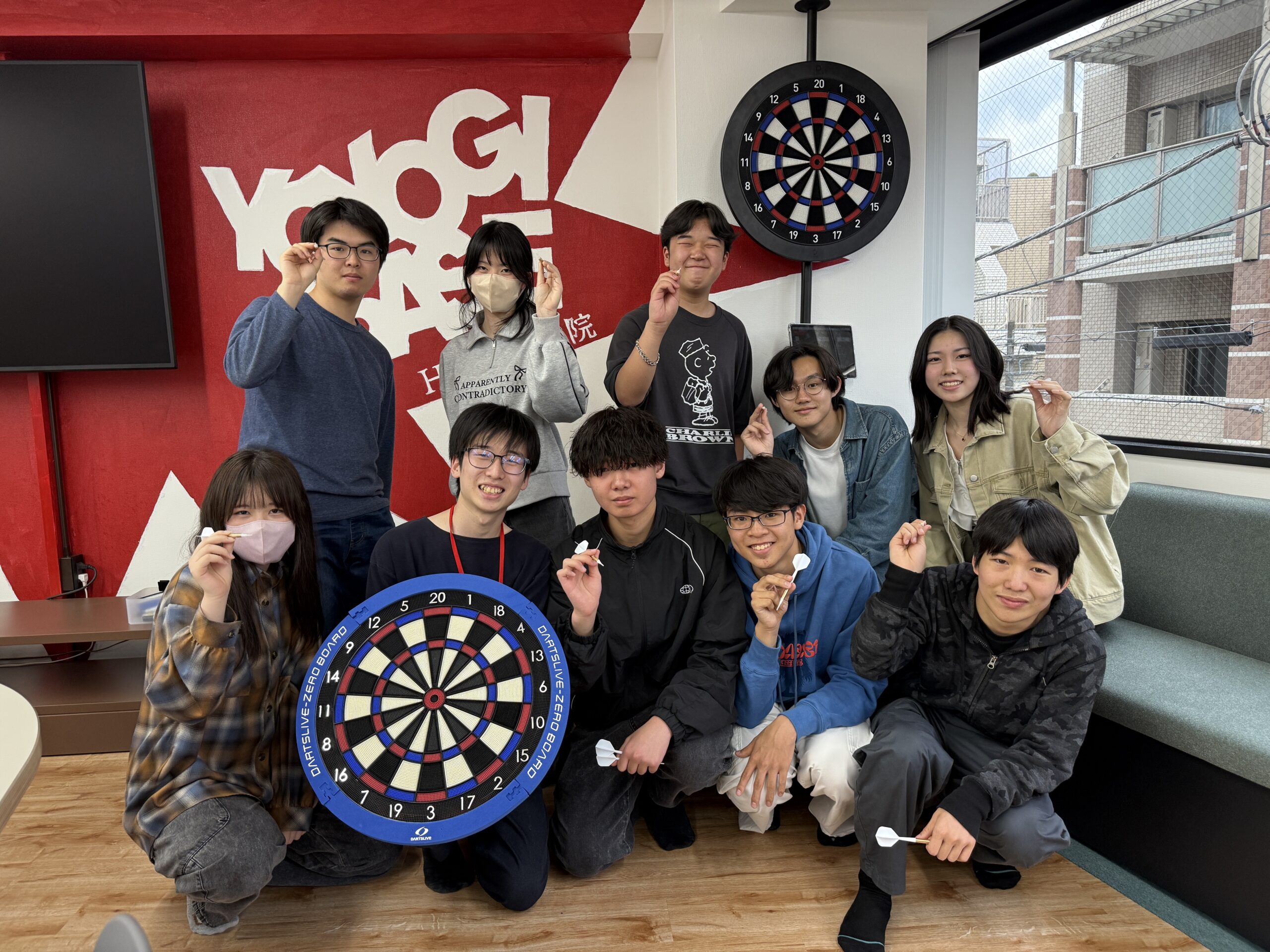 生徒や教員、ダーツ選手、デフリンピアン、全盲シンガーが一緒にダーツ